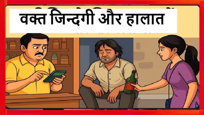 उस शराबी ने उस लड़की का हाथ झटक दिया “नहीं.. इस दुनिया में अब मेरा कोइ अपना नहीं” और शराब के बॉटल का ढक्कन खोलने लगा। इससे पहले कि मैं उसे अपने दुकान के सामने पीने से रोकता – “जा रही हूँ सर, पर बहुत रो रहे होंगे वे दोनों आपको देख कर, वे सिर्फ उस दिन नहीं बल्की रोज आपको इस हाल में देख मरते होंगे। काश कि आप पहले की तरह मुझ जैसे बच्चों की ज़िंदगी में खुशियां लाते तो आपको उन बच्चों में आपका सौरभ और उनकी सफलताओं में आपकी पत्नी दिखती!”